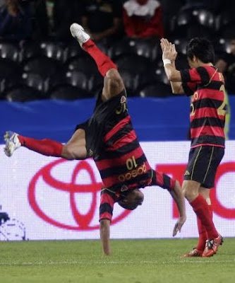 O campeão da Liga dos Campeões Asiáticos, os sul-coreanos do Pohang Steelers, levaram de vencida o Mazembe, campeão africano, e jogarão agora com o Estudiantes de La Plata, nas meias-finais do torneio. O encontro disputado em Abu Dhabi, sob a queda de forte chuva, viu brilhar um lusófono. Denílson fez os dois golos que permitiram ao Pohang fazer a reviravolta no marcador e carimbar a passagem no Mundial de Clubes. Aos 28 minutos, o Mazembe inaugurou o marcador quando Bedi disparou de longe, ficando a ideia de que o guardião Hwa Yong poderia ter ficado melhor na fotografia. Os asiáticos empataram logo a abrir a segunda parte num cabeceamento certeiro de Denílson que, assim, colocava justiça no marcador. A dez minutos do fim, o Pohang Steelers viria a completar a reviravolta, quando Denílson entrou pela área e colocou a bola entre as pernas do guarda-redes do Mazembe. O Pohang jogará agora com o Estudiantes dia 15 de Dezembro.